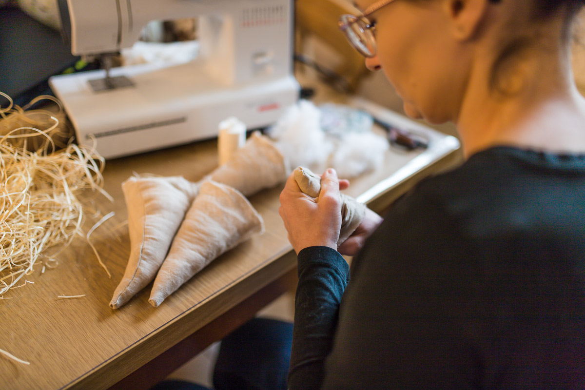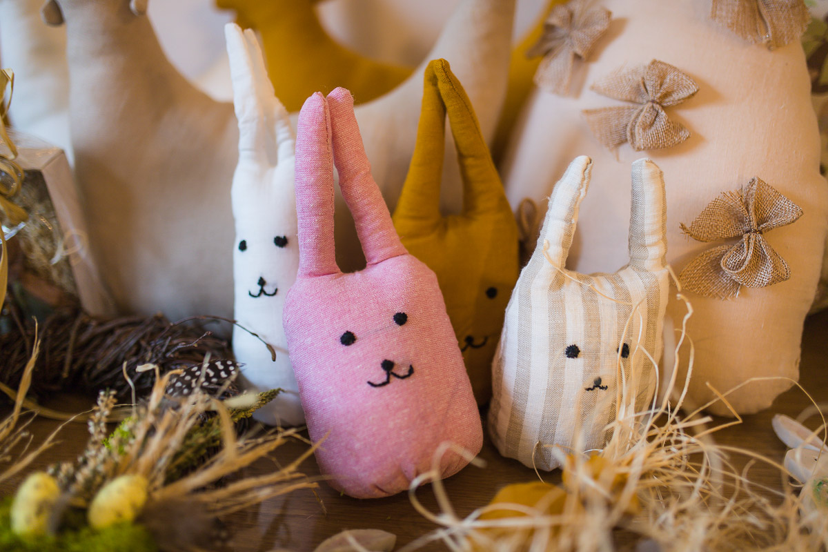 rękodzieło z materiałów i tkanin – m.in. wielkanocne króliczki, jajka, ozdoby świąteczne, dekoracje stołowe i tekstylne,